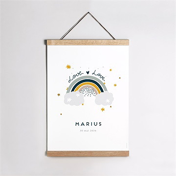 Ce système d’accroche se compose de deux barres en bois, une pour la partie haute et une pour la partie basse de votre page d’affiche, maintenues par de petits aimants puissants. Grâce à ce principe ingénieux, l’installation est simple, rapide et sans outil : plus besoin de cadre classique ni de clous. Il vous suffit de glisser votre affiche dans les barres magnétiques et de la suspendre où vous le souhaitez. Entièrement pensé et imprimé en France, ce support s’accorde parfaitement à vos affiches naissance pour la chambre de bébé ou pour toute autre pièce de la maison. Sa finition naturelle en bois clair apporte une touche tendance et déco, idéale pour compléter une ambiance scandinave, bohème ou minimaliste. Vos affiches restent parfaitement mises en valeur, avec une touche d’élégance et de modernité. Alliant qualité, praticité et design, cette solution d’accroche est idéale pour transformer une simple page imprimée en véritable élément de décoration murale, à la fois raffinée et dans l’air du temps.