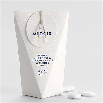 Comme nous l'avons vu, les dragées sont les cadeaux incontournables d'un mariage. Généralement, elles sont offertes dans un sachet de tulle. Mais que diriez-vous d'opter pour un contenant à dragées de mariage un peu plus original ? Nous vous présentons, sur Monfairepart, la boîte en carton pensée spécialement pour accueillir vos dragées.