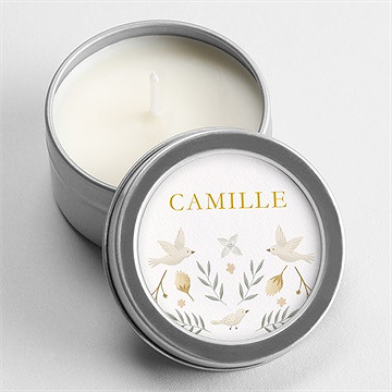 Afin de rendre vos tables plus belles, vous trouverez dans la gamme baptême des bougies à personnaliser par vos soins. Ces petits photophores sont un atout de décoration de table à votre image que vos invités pourront emporter à la fin de la journée. Argentée ou dorée, sa petite boîte métallique fait de la bougie un cadeau original pour accompagner la traditionnelle boîte de dragées.