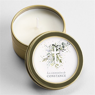 En plus d'avoir une symbolique lors de la cérémonie, la bougie peut également s'offrir. Traditionnellement, on retrouve sur la table l'indémodable boîte à dragées avec laquelle les invités repartent. Et si pour changer, vous faisiez preuve d'originalité ! Monfairepart vous propose une nouveauté, la bougie personnalisée. Sous forme de ravissantes petites boîtes métalliques, les bougies de communion sont le cadeau parfait pour vos proches. En plus d'être des petits cadeaux attentionnés, ce sont de ravissants éléments de décoration pour votre fête, à positionner près du verre de chacun de vos invités. Personnalisées, elles permettent de se rappeler des moments à chaque utilisation. C'est un produit que nous proposons pour différents événements de vie tels que le mariage, le baptême, ou que vous pouvez utiliser pour une confirmation. Dans son écrin métallique, la petite bougie communion est composée d'une quarantaine de grammes est composée à 100 % avec de la cire de soja. Elle mesure 5 cm de diamètre et 2.5 cm de hauteur.
