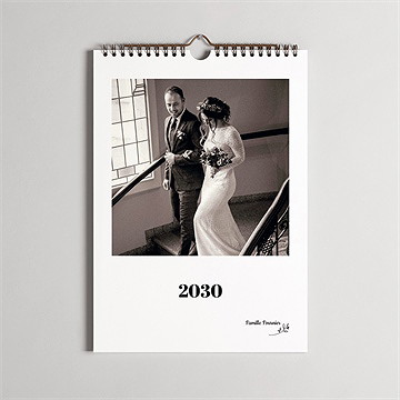 Notre calendrier photo spirales est composé de 13 pages personnalisables au recto (la couverture et chaque mois de l'année), reliées entre elles par une spirale en métal cuivré. Cet élément décoratif apporte une touche d'élégance et s'adapte à tous les styles d'intérieur. Le format A4 de notre calendrier vous permet de l'afficher sur le mur de votre bureau ou toute autre pièce de la maison. Vos photos sont ainsi suffisamment grandes pour pouvoir les admirer de loin !