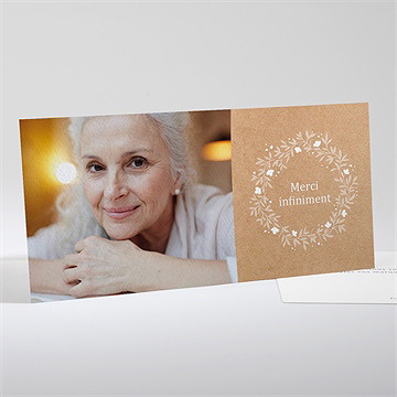 En période de deuil, il est important de se sentir entouré et soutenu par les personnes qui vous sont proches. C'est vrai, en ces moments difficiles, il est bon de recevoir de l'attention, des fleurs et des pensées chaleureuses. Sur Monfairepart, nous vous proposons de remercier comme il se doit les membres de votre famille et les amis qui vous ont rendu visite et se sont montrés présents, pour vous épauler et vous consoler. Comment ? Grâce à une carte de remerciement de décès. Et pas n'importe laquelle ! Rendez hommage à la personne disparue, grâce à une carte de remerciement décès avec photo. Sur le site de notre imprimerie en ligne, choisissez, parmi les nombreuses cartes, le modèle qui vous correspond et personnalisez votre projet. Comment rédiger le texte de remerciement en cette période de deuil ? On répond à vos questions.Lire la suite