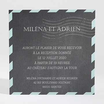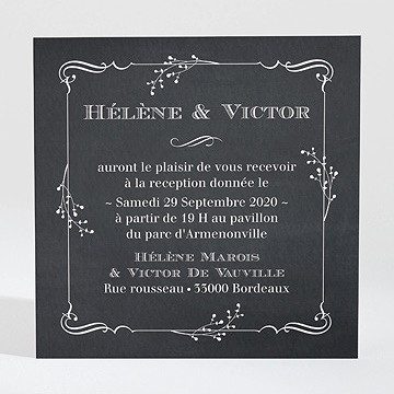 Avec votre conjoint(e), vous vous êtes enfin mis d’accord sur la date et le lieu de votre mariage. Il ne vous reste alors plus qu’à établir la longue liste d’invités à la cérémonie, ainsi qu’à la réception. Famille, amis et collègues de travail ? Qui inviter à la cérémonie, au cocktail ou au repas de mariage ? Avec les cartons d’invitation de mariage, informez vos proches sur le déroulement de ce grand jour et l’organisation de votre réception. D’un format adapté, il suffira simplement de les glisser dans votre enveloppe, pour accompagner vos faire-part. Vos cartons d’invitation vintage, ainsi personnalisés selon le thème de votre mariage, serviront à donner aux convives toutes les informations nécessaires concernant le fameux Jour J. Assortis à vos faire-part de mariage rétro, ils sont l’invitation parfaite pour le grand jour.Lire la suite