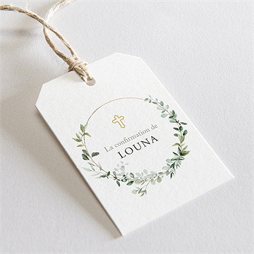Pour sublimer vos boîtes de dragées, vos cadeaux d'invités ou tout simplement marquer la place de chacun à table, l'étiquette confirmation est l'accessoire indispensable qui apporte cette touche de raffinement et de personnalisation, la seule limite.. votre imagination ! Monfairepart vous propose une large gamme d'étiquettes confirmation déclinées en différents formats, styles et coloris pour s'accorder parfaitement avec l'ensemble de votre papeterie. Grâce à notre studio de création en ligne, personnalisez facilement vos étiquettes en y ajoutant le prénom de votre enfant, la date de la cérémonie ou un message qui vous tient à cœur, le tout imprimé sur un papier haut de gamme.Lire la suite