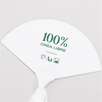 Optez pour nos éventails en papier à distribuer en début de journée. Légers, ils seront faciles à transporter et à conserver durant la journée. Le choix du papier vous appartient : un papier blanc couché mat, un papier création plus texturé, ou un papier recyclé pour une option respectueuse de l'environnement.