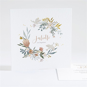 Grâce à notre outil de personnalisation en ligne, vous pouvez faire évoluer chaque détail de votre carte : modifier les couleurs, ajuster les typographies, choisir vos fleurs préférées et ajouter un portrait de votre bébé pour rendre l'invitation unique et profondément personnelle. Une colombe, un cœur, ou une arche végétale peuvent venir compléter le thème, symbolisant l'amour, l'unité et la douceur de ce moment si précieux.