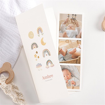 Osez une touche d’originalité, tant dans le fond que dans la forme du faire-part de naissance de votre enfant. Cela peut être un petit détail craquant qui fera toute la différence tel qu'un bracelet, une ficelle ou bien une photo saisie sur le vif. Découvrez également nos faire-part à gratter : grâce à des pastilles à gratter, vous pouvez cacher certaines informations telles que le prénom de votre bébé, ou le poids et la taille à la naissance. Côté forme, n'hésitez pas à opter pour un joli faire-part original, tel qu’un magnet ou un marque-page. Vos proches ne résisteront pas à l'envie de l'exposer fièrement sur le frigo, ou de l'insérer dans leurs lectures de chevet… Surtout s'il affiche la frimousse de votre enfant sur ses photos.