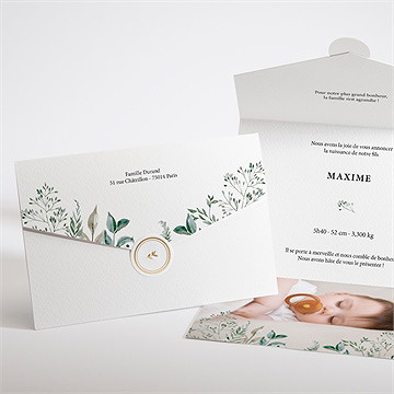 Le faire part de naissance garçon de couleur bleu ou rose pour une fille, très peu pour vous. Aujourd'hui, les clients recherchent avant tout l'originalité et une touche de modernité. Le faire-part de naissance vert s'impose comme une alternative élégante et intemporelle, qui séduit par sa couleur douce et apaisante.