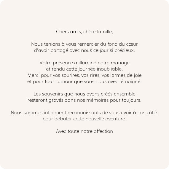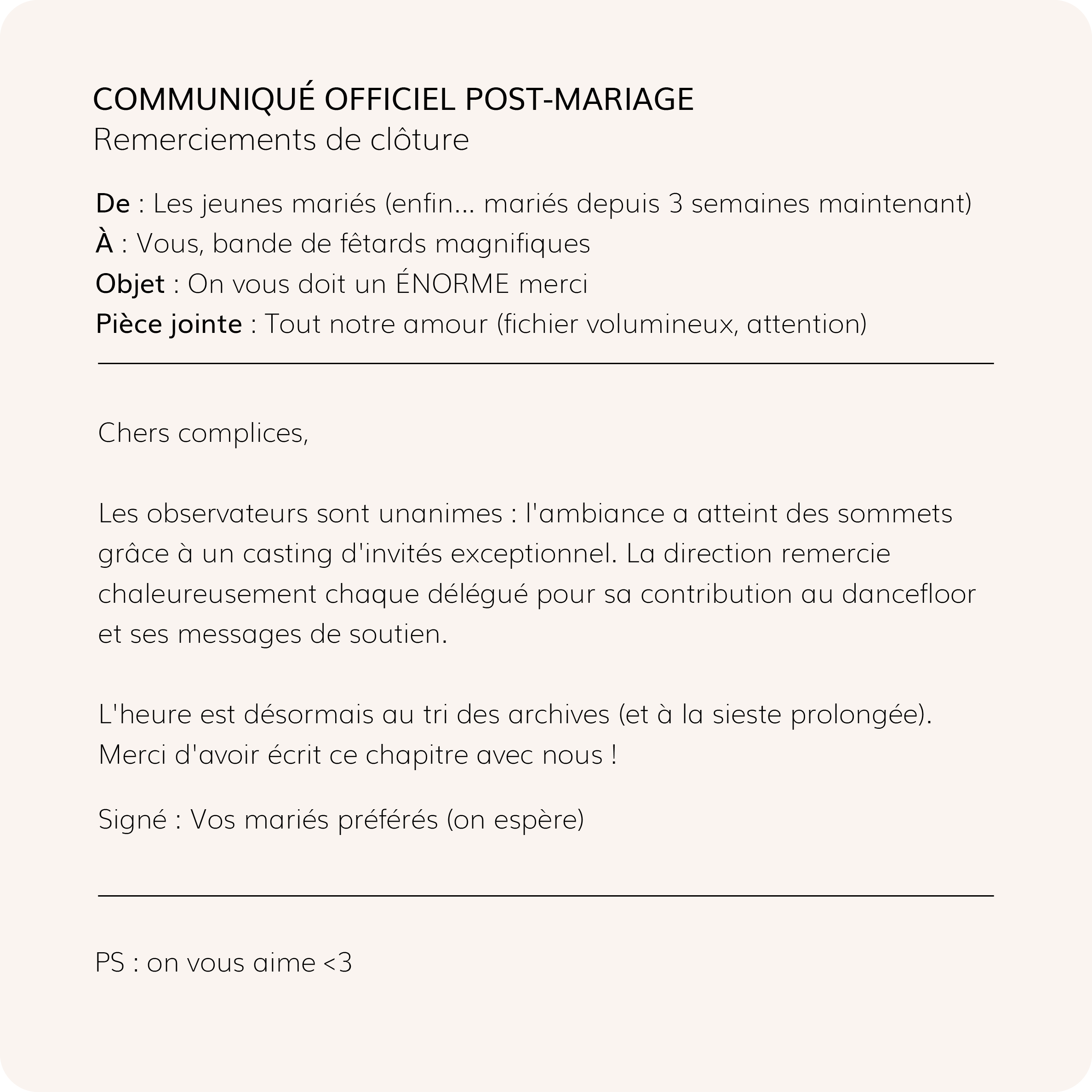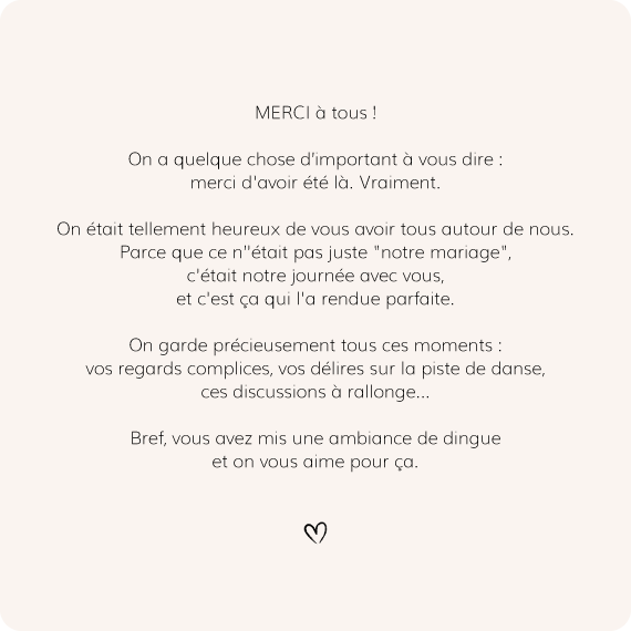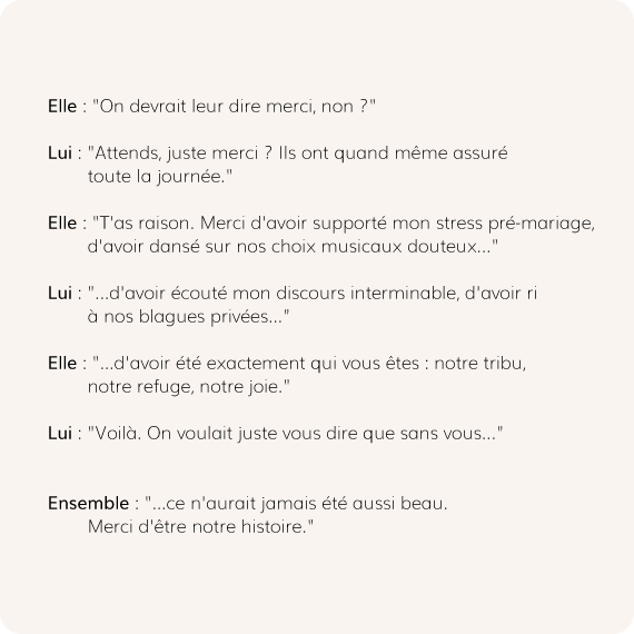 "Merci de nous avoir aidés à officialiser nos prénoms dans le grand livre des mariés !"