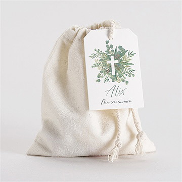 La première communion de votre fille ou de votre fils est placée sous le signe de Dame nature ? Orientez-vous vers un pochon à dragées communion paré d'une étiquette style champêtre. Misez sur une étiquette ayant une couleur douce comme rose pastel, vert d'eau ou pêche assortie à vos sachets écrus. Sinon, vous pouvez opter pour une étiquette ayant un fond en blanc et des illustrations florales aux douces teintes estivales.
