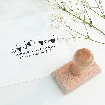 Le tampon encreur en bois offre la possibilité de reproduire un motif à l'infini en un clin d'oeil, sur tout type de support (papier, carton, tissu, bois, verre, etc.) sous réserve d'utiliser les bonnes encres. Les adeptes du DIY ont fait du tampon encreur l'un de leurs outils de prédilection puisqu'il facilite la fabrication "maison" et permet de personnaliser sans limite, d'ajouter un maximum de détails à votre papeterie… Vous l'avez compris, le tampon encreur de mariage personnalisé en bois est un accessoire à placer en tête de liste du matériel dont vous aurez besoin lors de l'organisation de vos noces. Le tampon vous fera gagner en efficacité et économiser un temps précieux, pour un prix mini !